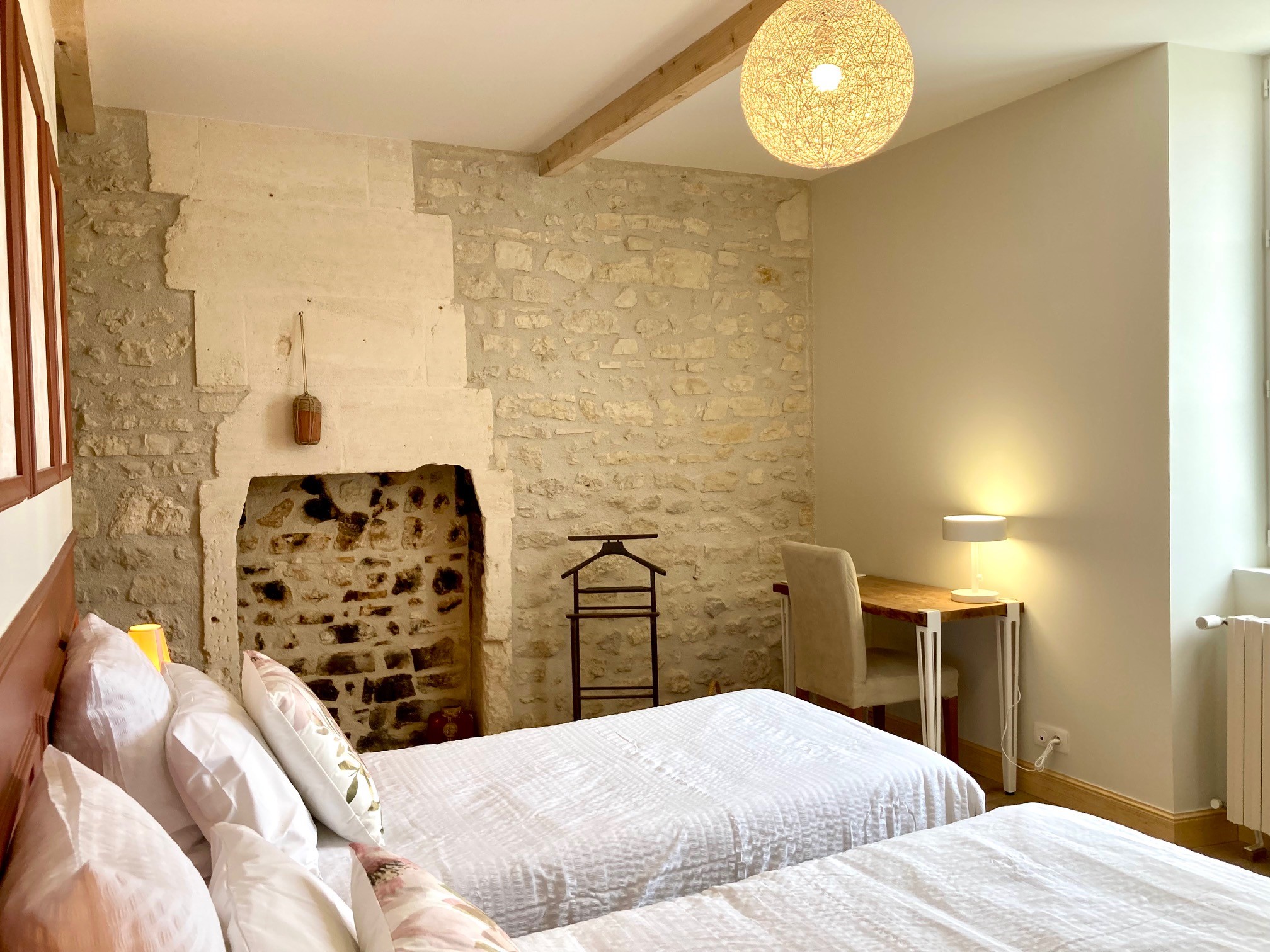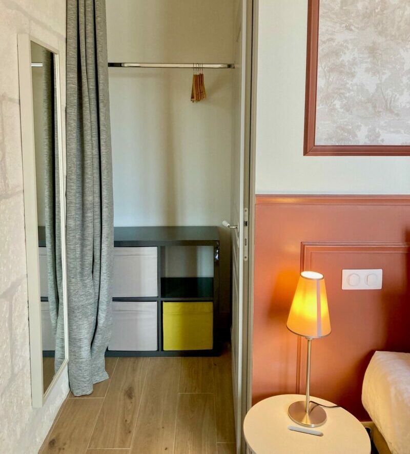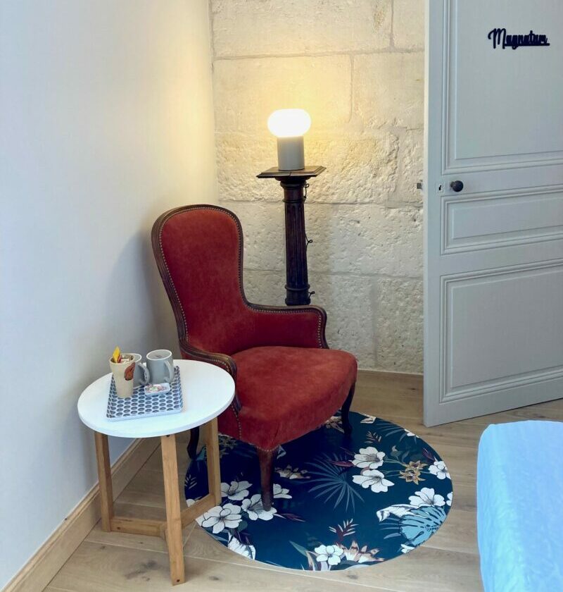 Située au rez-de-chaussée, cette chambre spacieuse de 20 m² offre un confort optimal pour deux personnes, avec la possibilité de jumeler les deux lits de 90 x 200 cm en un lit de 180 cm. Laissez-vous séduire par l’ambiance unique de cette chambre, où chaque élément de décoration contribue à créer une expérience sensorielle inoubliable.